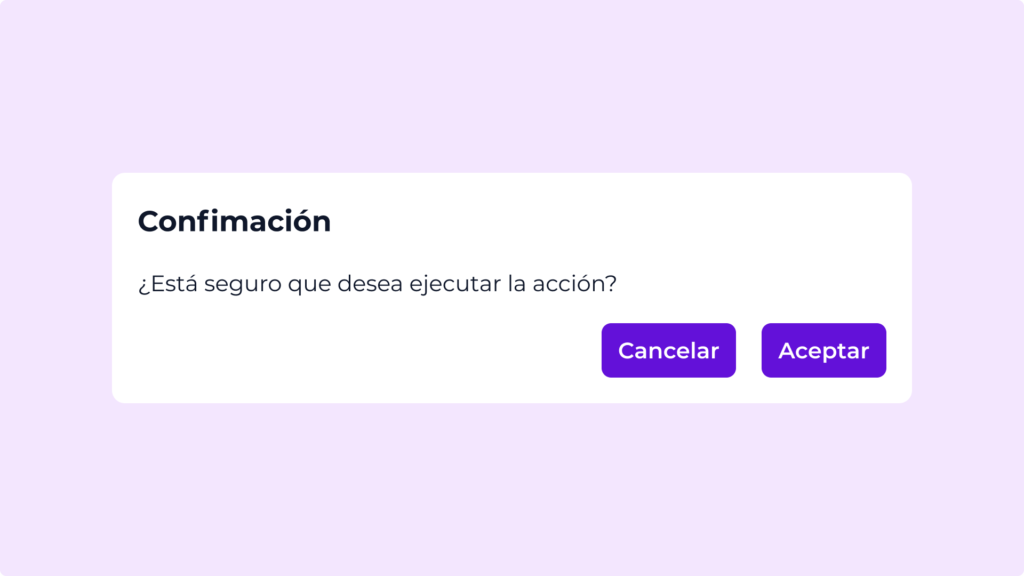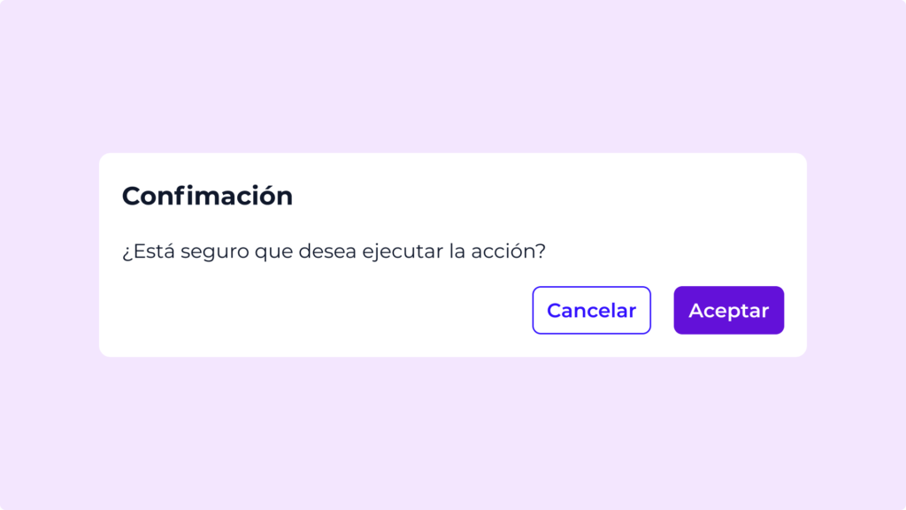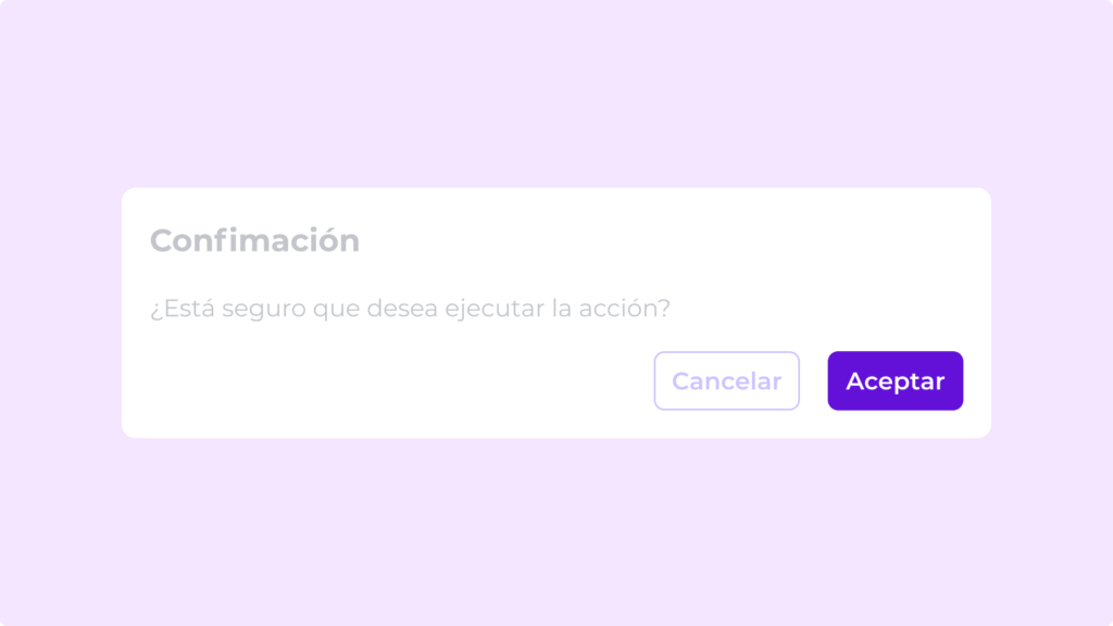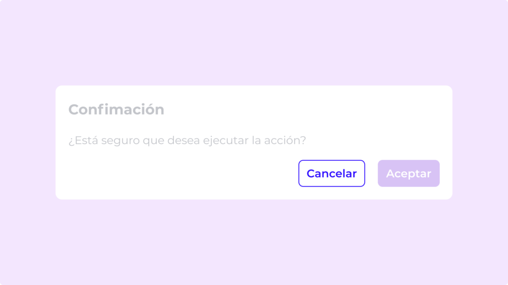Botón “Cancelar” como acción secundaria y botón “Aceptar” como acción primaria en un formulario.
