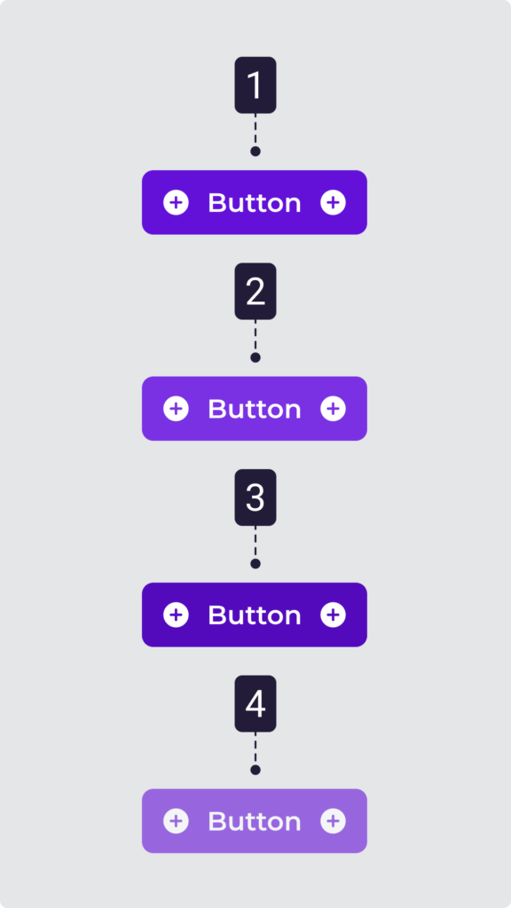 Los estados visuales permiten que el botón comunique su situación actual y la respuesta del sistema frente a la interacción del usuario.
