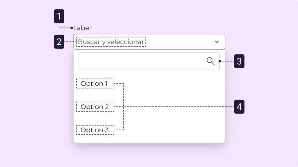 El Select con buscador es un componente de formulario que permite buscar y seleccionar una opción dentro de una lista extensa. Integra un campo de entrada que filtra dinámicamente las opciones disponibles, facilitando la localización rápida de información y mejorando la experiencia de usuario cuando existen muchos elementos.