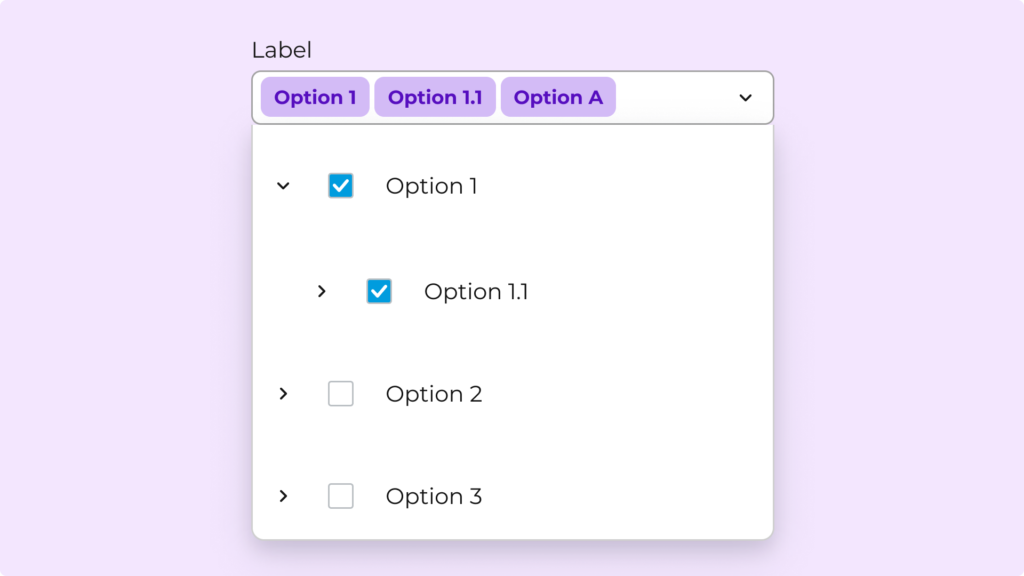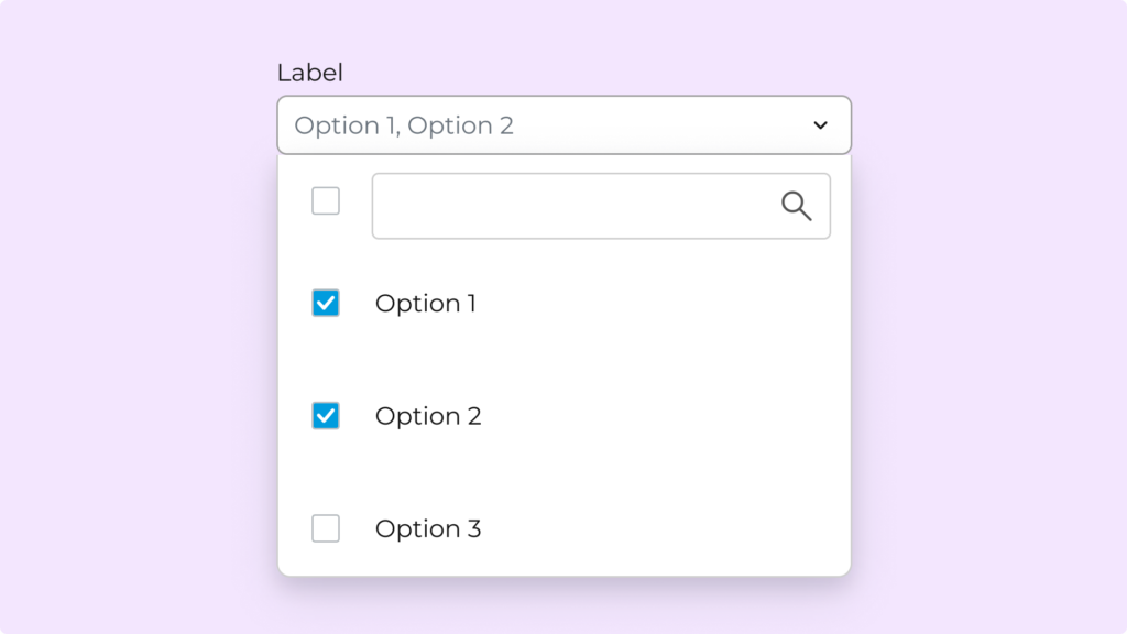 El MultiSelect es un componente de formulario que permite seleccionar múltiples opciones dentro de una lista. Las selecciones pueden visualizarse en el campo como texto resumido o como chips, dependiendo de la variante utilizada.