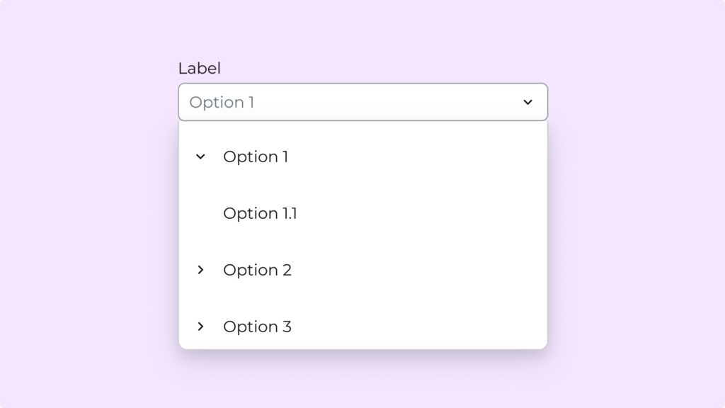 El componente Select permite al usuario elegir una única opción de una lista desplegable.