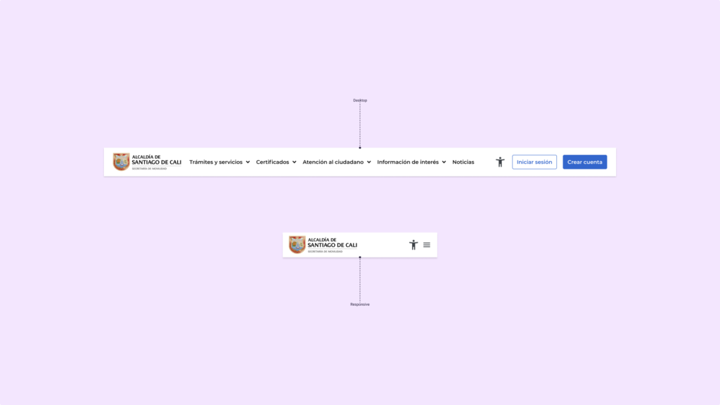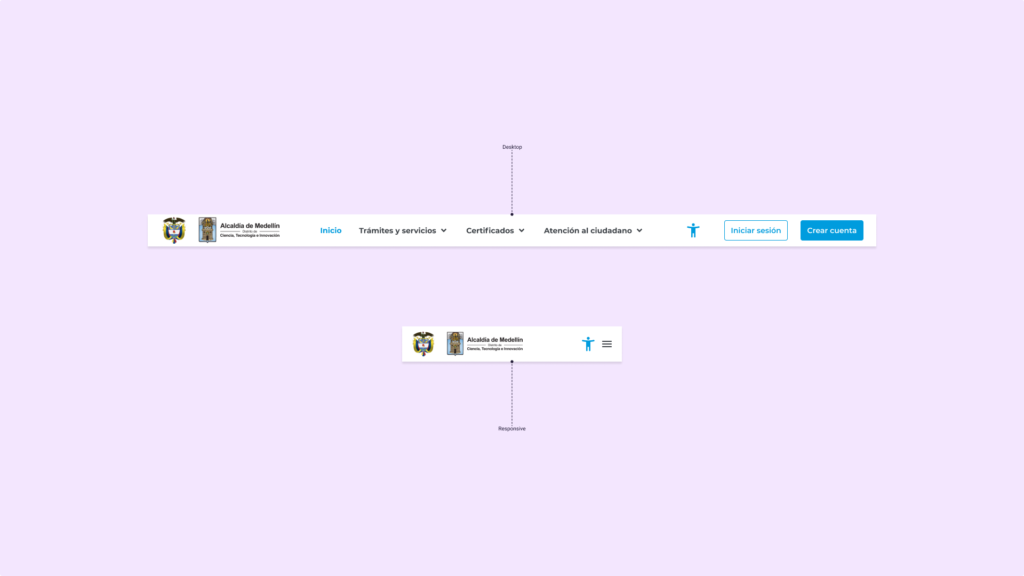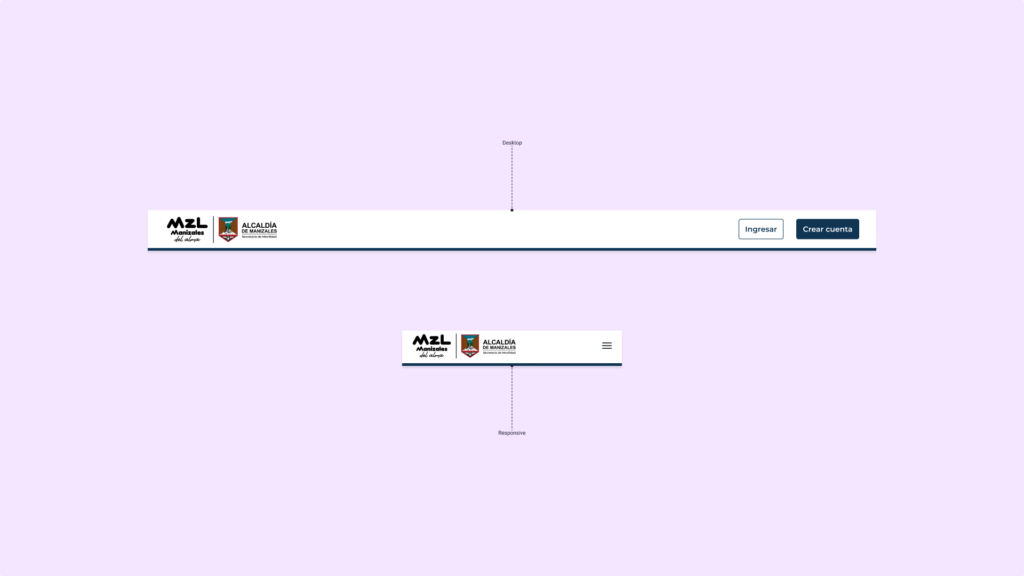 Los logos en los header, tanto desktop como responsive, deben mantener una altura aproximada entre 50 y 60 px, garantizando buena legibilidad y proporción dentro de la interfaz sin afectar la jerarquía visual.